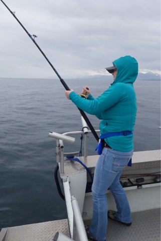 Alyeska was the first to reel in the one and only fish of the day- a silver!
